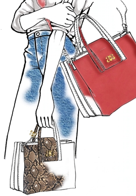 Abbiamo progettato i nostri accessori pensando ad una donna dinamica con la voglia di indossare un oggetto che la facesse sentire bella ed a suo agio. Un’alchimia tra leggerezza, praticità, eleganza e femminilità. Realizzando delle borse pratiche, abbiamo pensato a tutto quello che avremmo voluto metterci dentro. Da questa esigenza la struttura interna delle borse è stata dotata di tasche, zip centrali e cerniere. Le lavorazioni sono particolari e preziose, come il matelassé e tutte le borse sono caratterizzate dall’identificativo monogram che ben enfatizza il brand. Le catene ed i pendenti in metallo ne sottolineano la preziosità.